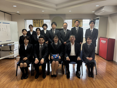 4月1日(水)、令和8年度の入社式を執り行いました。 新入社員として大島忍さんが入社され、決意表明を頂きました。 入社式後は、毎年恒例の創業者墓参会を実施し、昨年度の報告及び今年度の抱負を創業者に伝えました。 今年度も、お客さまからたくさんの「ありがとう」を頂けますよう努めてまいります。